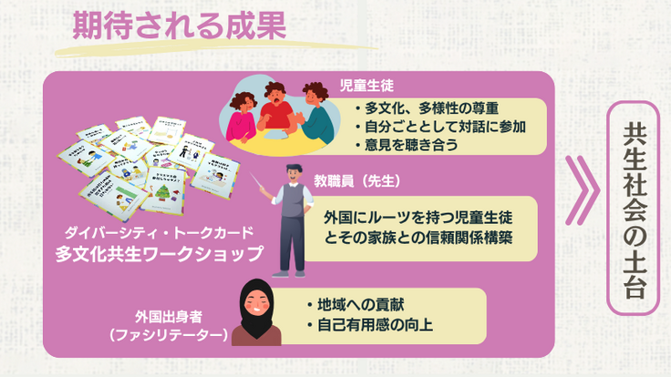 開発した「ダイバーシティ・トークカード」は、教育現場での活用を想定していましたが、外国人技能実習生を受け入れる企業や、地域自治会、行政窓口など、外国出身者との関わりが生じるさまざまな場面でも役立つ可能性を持っています。