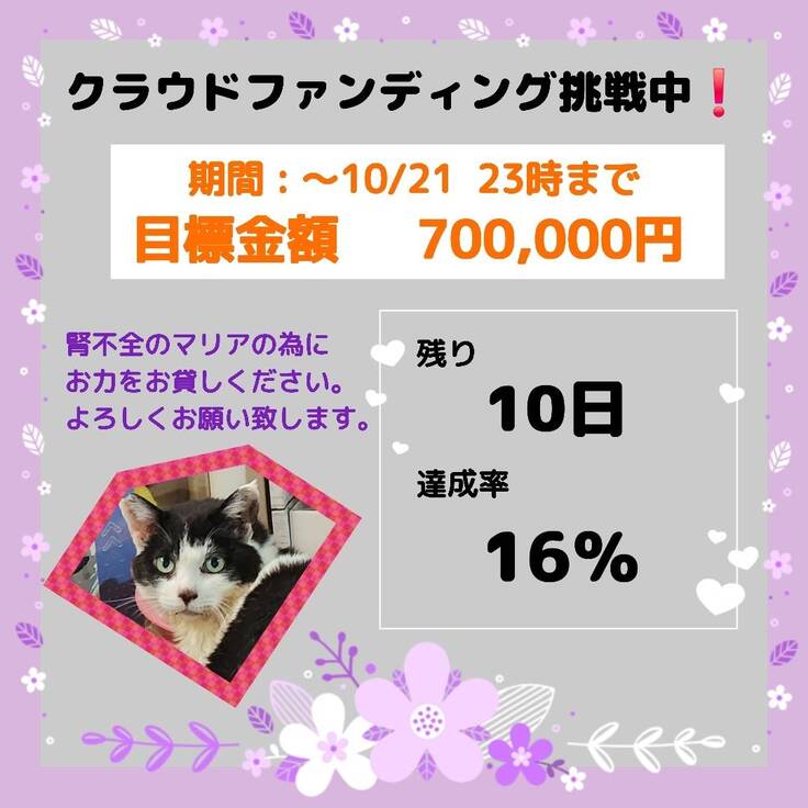 どうか腎不全の治療を頑張っているマリアがこれからも穏やかに過ごせるように皆様のお力をお貸し下さい🙇♂️