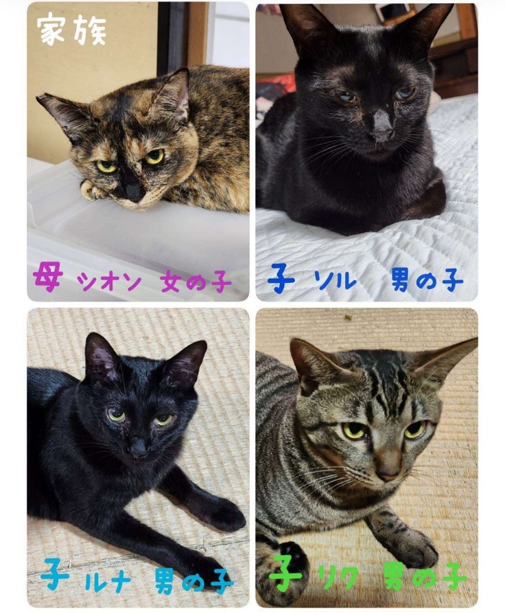 ・シオン♀(母)、ソル♂、ルナ♂、リク♂(兄弟)