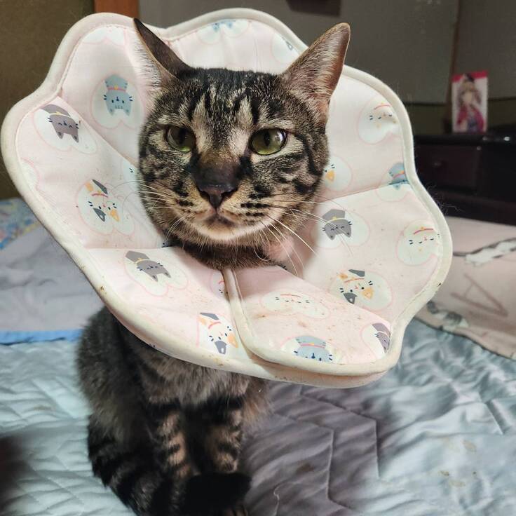 生後4ヶ月を過ぎた頃に急に弱っていたところを見つけ病院に連れて行くと、事故にあったのか、人の手でやられたのか横隔膜が破裂しており、手術をしなければ命が危ないとのことで手術をしてもらい、そのままお家に迎え入れました。
