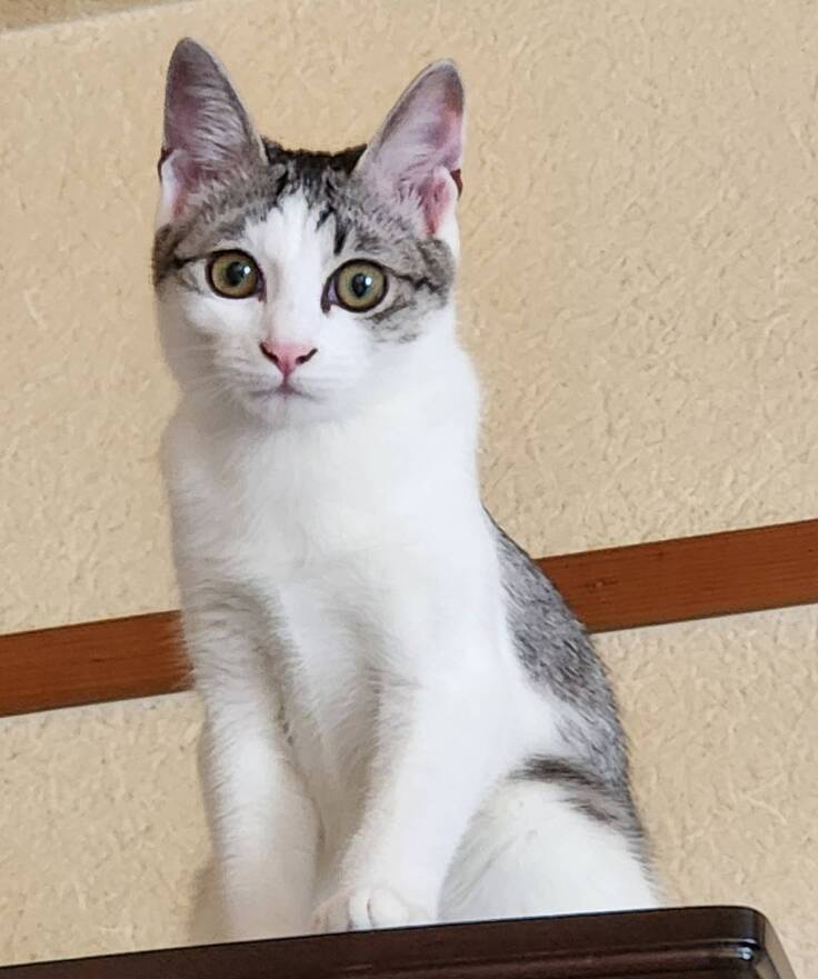9年前にFIPで白猫のリンちゃんが亡くなった半年後、兄の職場の方から子猫を保護したとのお話があり、我が家に迎え入れました。