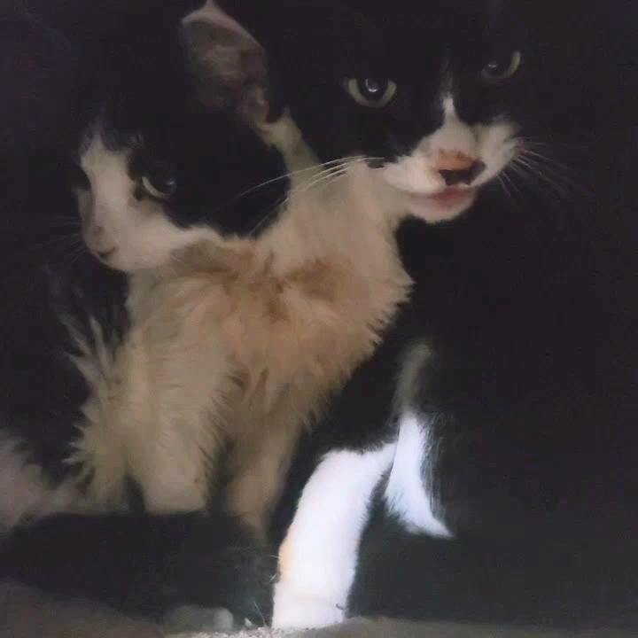 夕方、私が出先から帰るとキャットタワーのハウスの中でラナと一緒に入っていました🏠