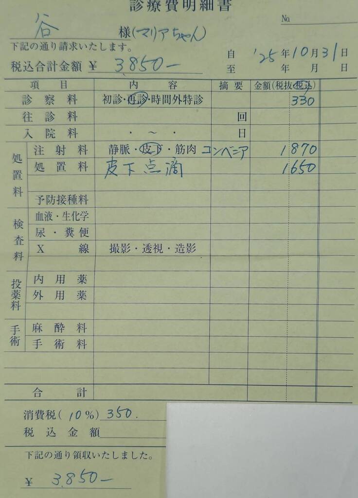 10月31日の金曜日、ジュニアと一緒に点滴治療のため病院へ行って来ました🏥