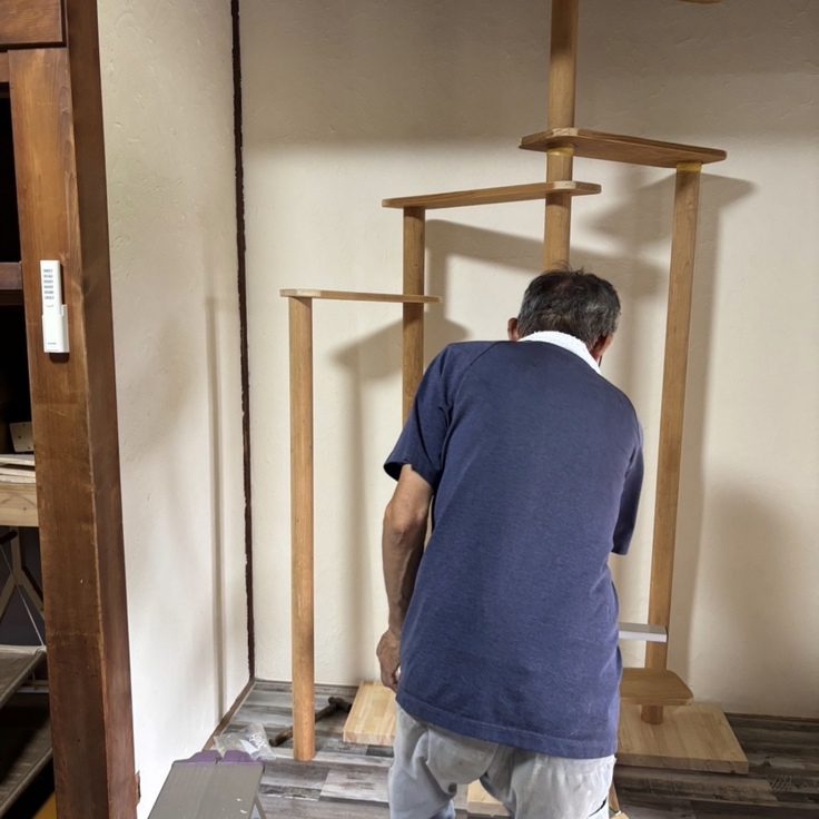 そんな父が猫達の為に床間に、キャットウォークをもらった廃材で手作りで作ってくれました✨