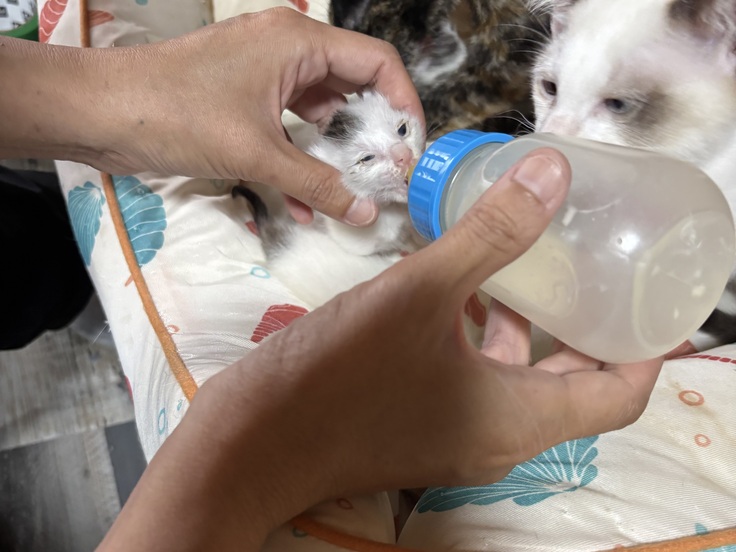 ひじきが体が小さい為、負担がかからないように間で授乳もしています🐱🐾