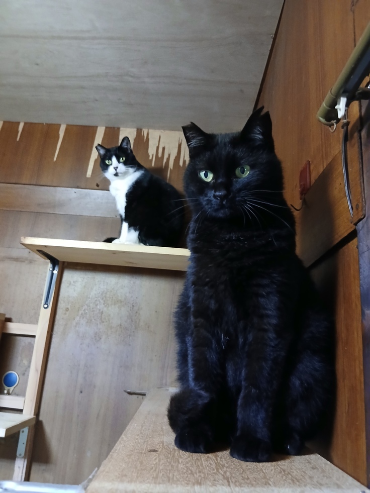 離れの猫部屋 掃除してたら猫達にガン見されてました😅