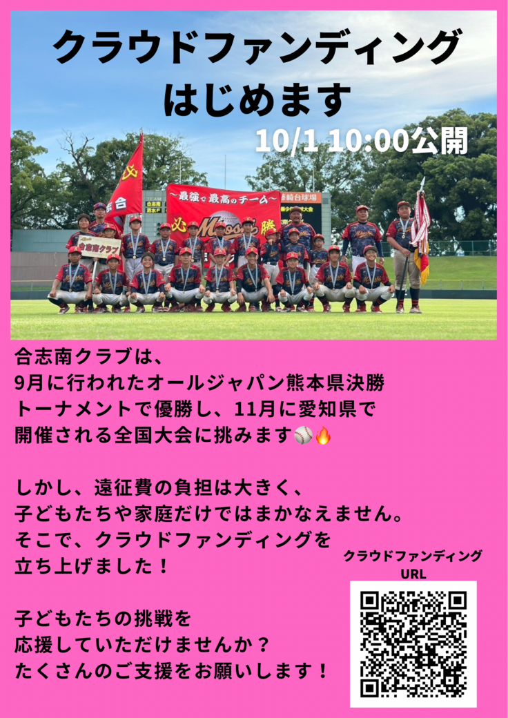 #合志南クラブ #全国大会 #クラウドファンディング #学童野球 #子どもたちの挑戦を応援