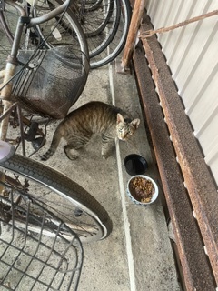 毎朝の通勤時、バス停までの道のり途中3ヶ所餌やりしていきます。