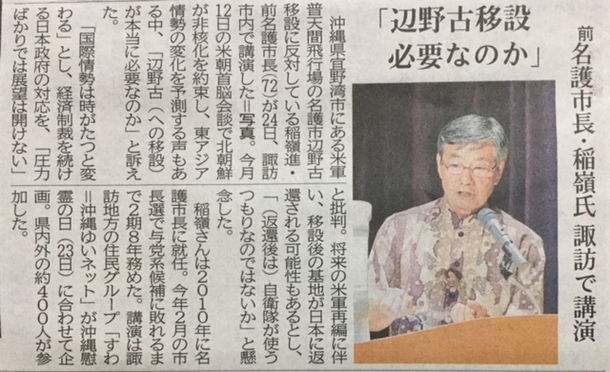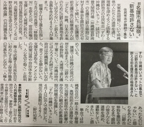 翌日には、長野県の新聞にも報じられ、より多くの方に沖縄との連帯をアピールできたことをご報告させていただきます。