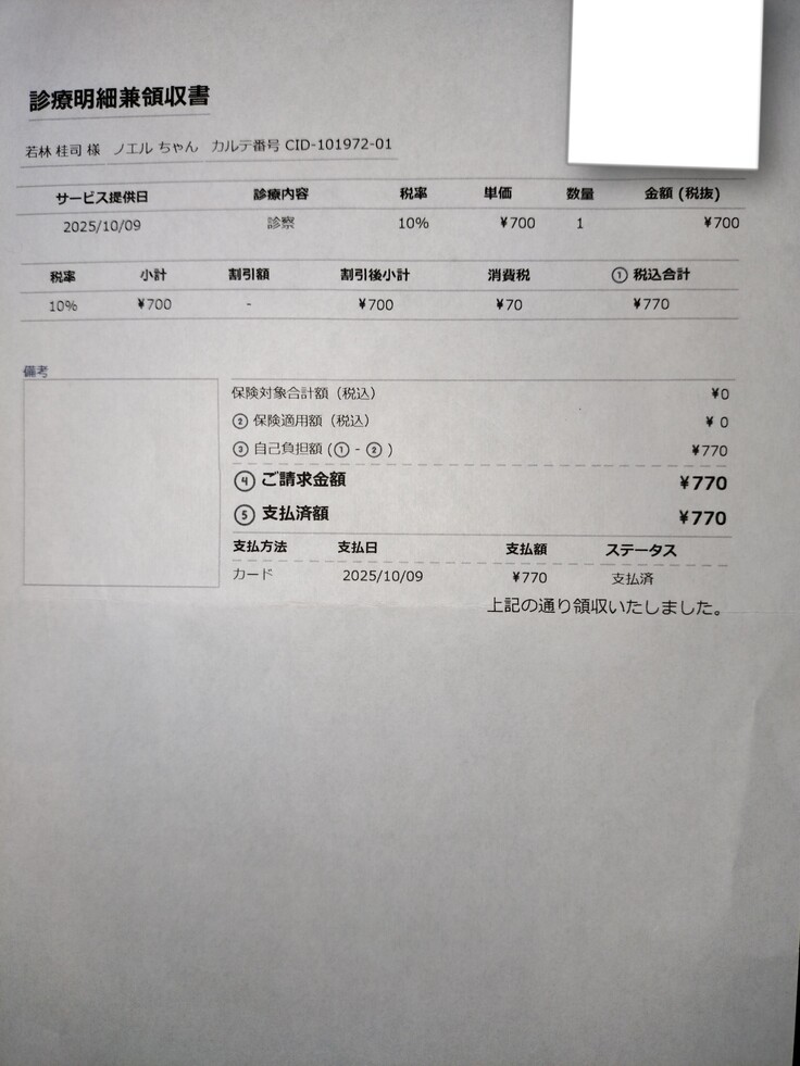 その後もぐったりと動かず、水の近くで丸くなっている姿があり、普段元気いっぱいなノエルな分とても心配になりました。かかりつけの病院が休みだった為、次の日に朝一で営業している最寄りの動物病院に向かいました。