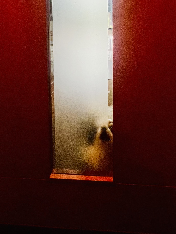 リビングのドアの前で行かせてくれと鳴きながら見ている青海です🐶
