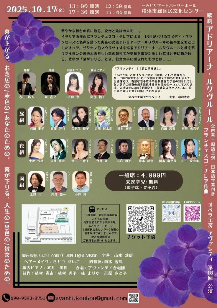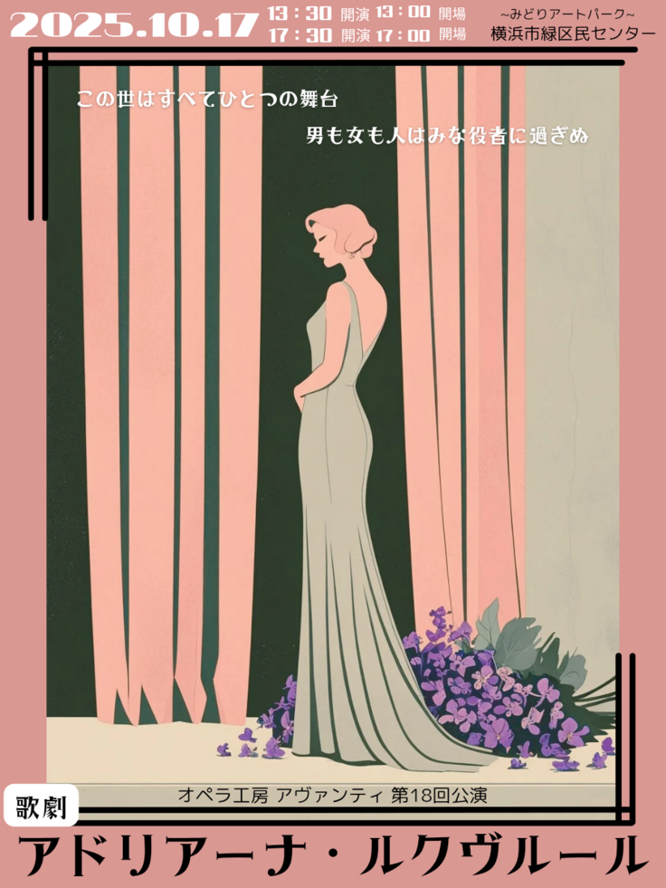 来る「2025年10月17日(金)」に、「第18回オペラ公演 アドリアーナ・ルクヴルール」を上演します。 今回は、そのための資金を集めたいと願っています。