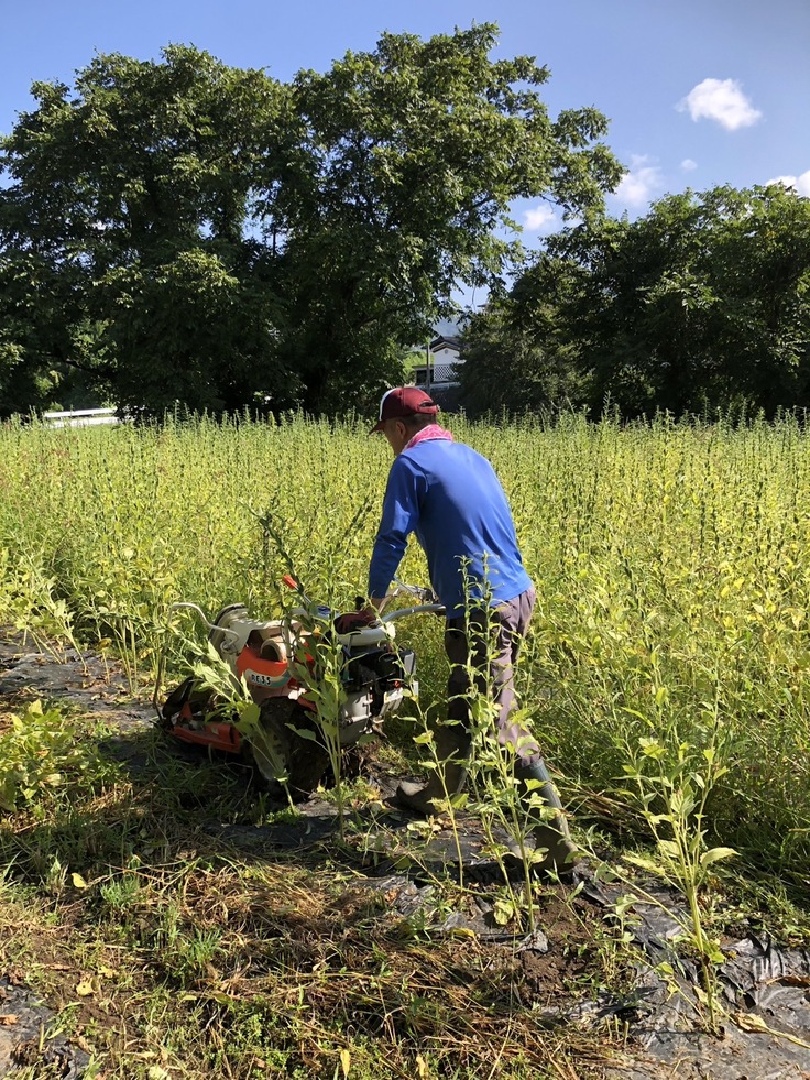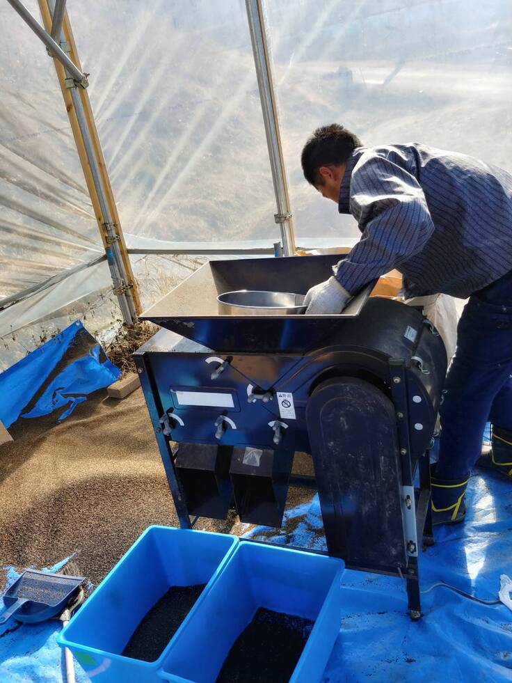 とはいえ、その道は決して楽なものではありません。発芽が遅いごまは、雑草との戦いです。マルチの穴一つひとつを手作業で草取りし、急傾斜地の草を刈る。昔ながらのバインダーで刈り取り、ハウスで乾燥させた後は、気の遠くなるような叩き、ふるい、唐箕(とうみ)での選別作業が待っています。