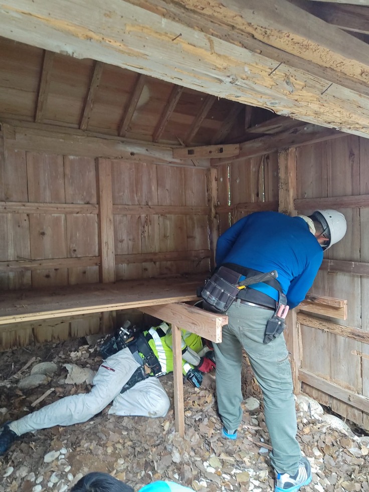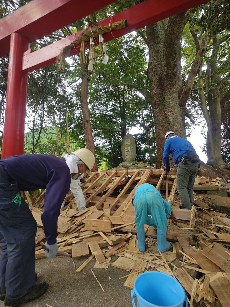 徐福さんの祠と稲荷さんの祠が納められた社は、地域の氏神として大切に守られてきましたが、次の世代に託せるようにと、それぞれの材質に分けられながら解体されていきました。いよいよ、再建プロジェクトのはじまりです。