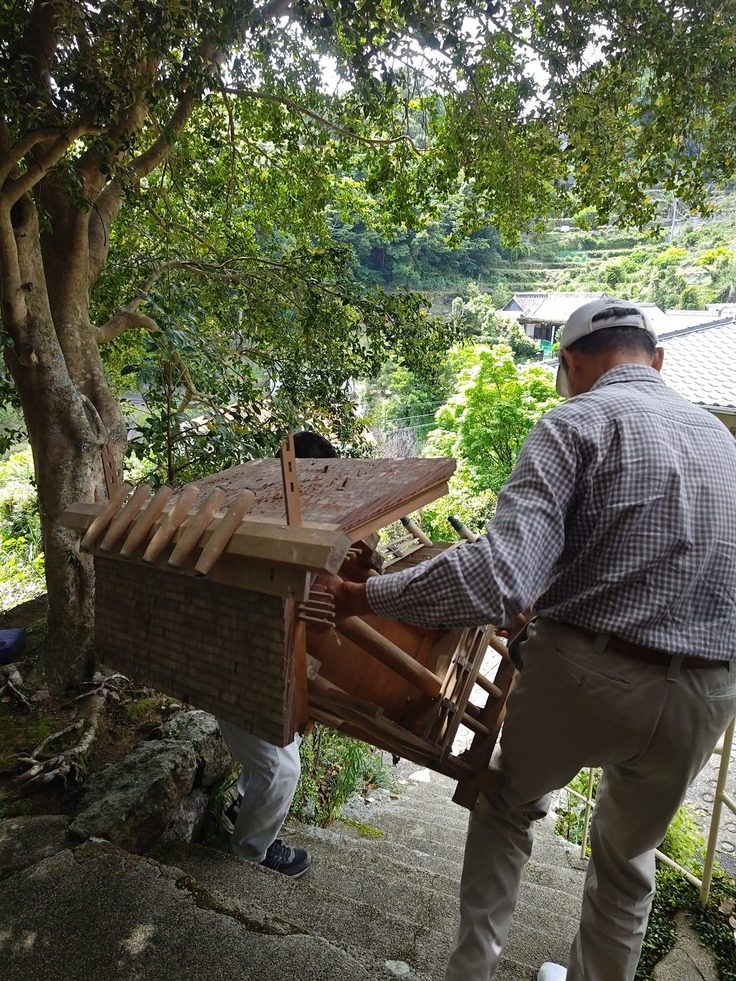 2023年5月に、波田須地区内外の有志が集まって、傾いた社の解体をしました。
