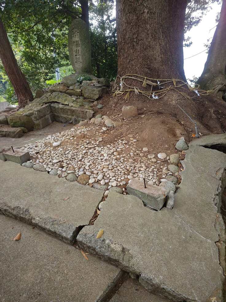 宮司による神事のあと、2つの祠を移すと、社は役目を終えたようにガランとしました。柱は全て白アリに侵され、張り出したクスノキの根に押されたこともあり、「これでよく建っていたな」と言われる傾きようでした。