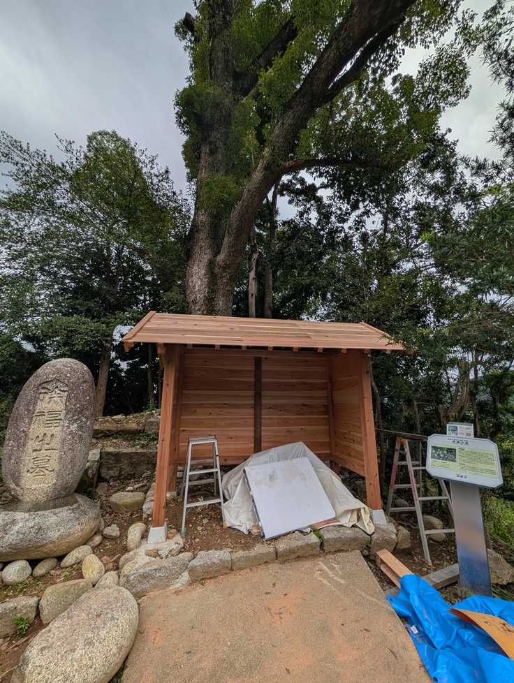 熊野木工の堀田くんに再建をおまかせし、周辺の整備をおこないました。11/5に秋の例大祭があり、それに間に合うように急ピッチでやっています。