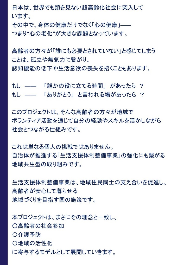 そんな高齢者の方々が「自分らしく輝ける場」を作るための