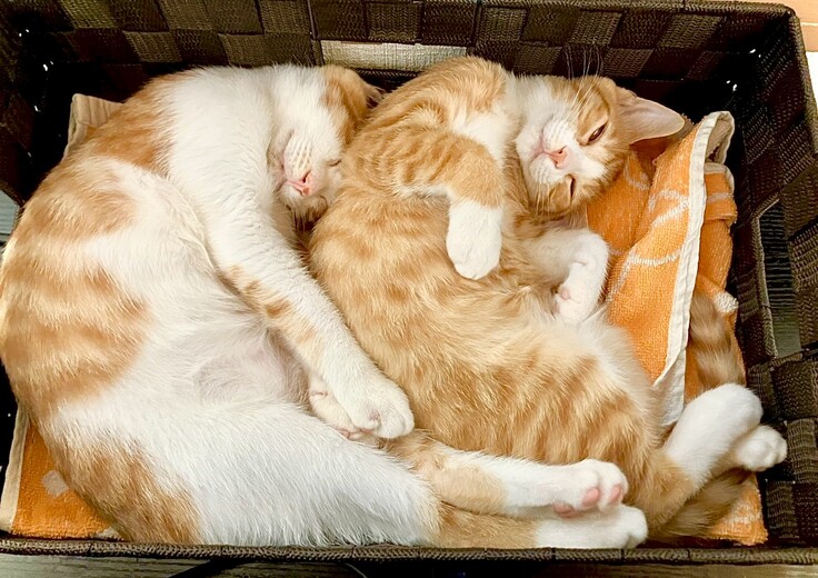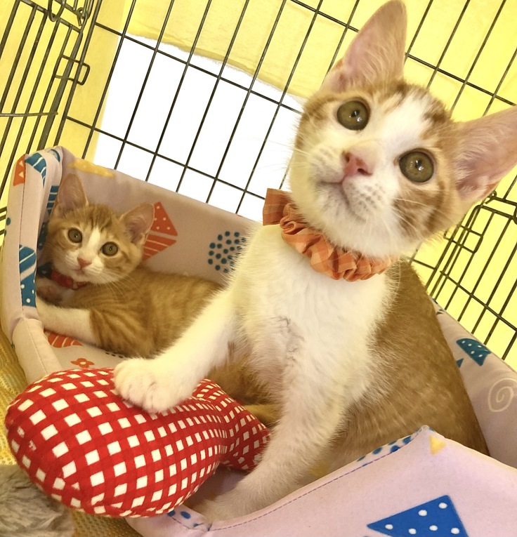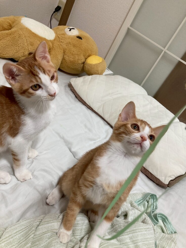 二匹とも仲が良く、一緒にオモチャで遊んだり、寄り添って昼寝をする姿が愛らしい子たちです。
