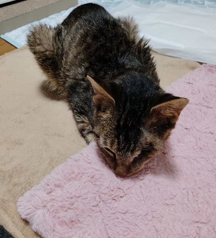 ペット用ホットカーペットがお気に入りの様です。退院してはじめて爪とぎをしました。少しずつ元気になっていってる様で嬉しいです😊