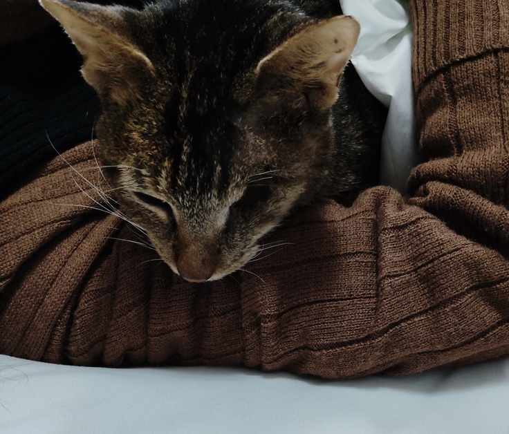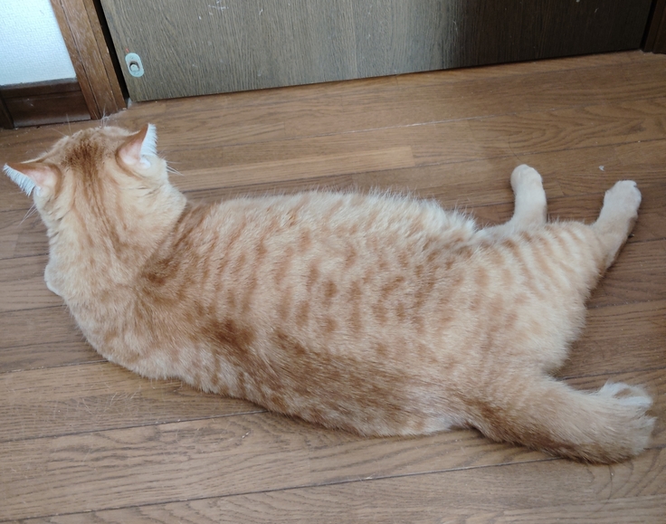 こちらはぽっちゃり先住猫です。この子も赤ちゃんの時猫風邪で目が酷くつぶれてましたが何とか回復しました。少し後遺症はありますが。