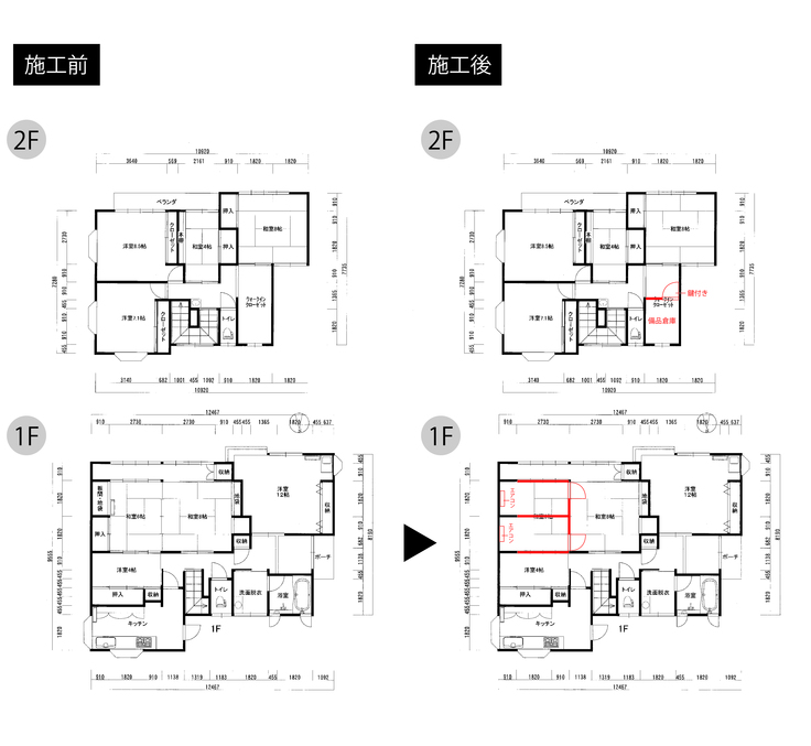 現在の3畳と6畳を4.5畳ずつにし、生活しやすい環境を作るため、1階部分和室を2つにわける必要があります。部屋数を増やすことができれば、1人でも多くの若者にお部屋を提供することができます。