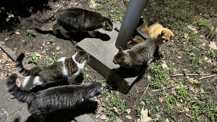 昨日は仕事が終わるのが遅く公園の野良猫たちのご飯が遅くなってしまいましたが全員無事にご飯を食べに出てきました