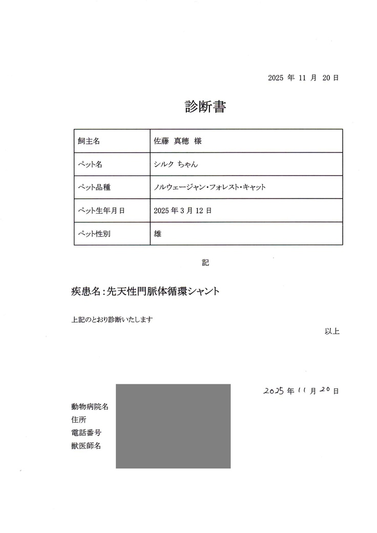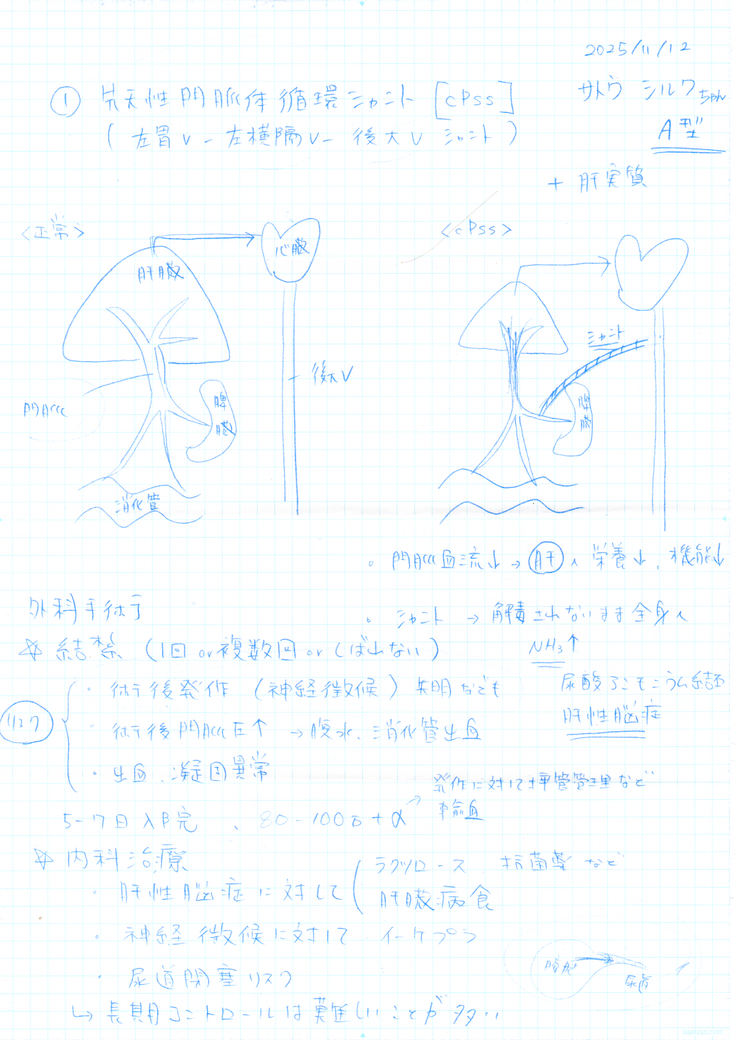 すぐに処置・検査をしてもらい、予想される病名が「門脈体循環シャント」でした。