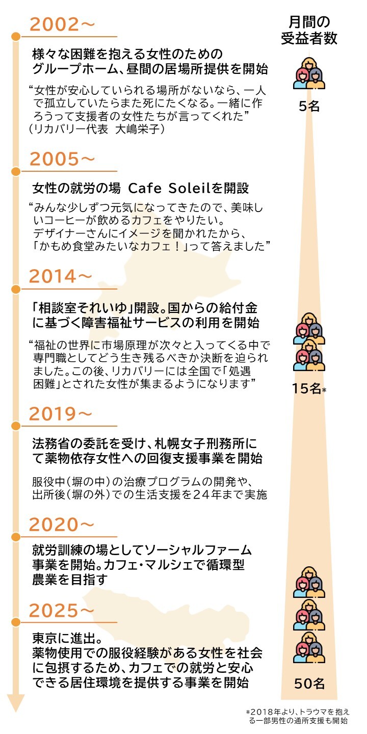 NPO法人リカバリーは20年以上、様々な暴力被害を背景に依存症をはじめとするメンタルヘルスの不調や障害などで複層的な困難を抱える女性に対し、住居提供や就労支援などの包括的援助を続けてきました。