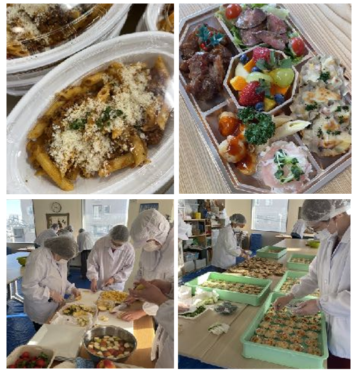 リカバリーとの関係とお届けにいたった経緯:2020年のコロナ禍において非正規労働の雇用環境が厳しくなる中で、ひとり親世帯の生活困窮が切迫した社会課題となり、少しでもXmasをXmasらしく過ごせるようにとひとり親とこどもふぉーらむ北海道からオードブルの受注をいただいたのがきっかけで始まった事業です。二つの団体はいろいろなかたちで「女性をサポートしている団体」同士のため、何か助け合えることはないか、オードブルをつくることで私たちにできる社会貢献をしたいという気持ちでご注文をお引き受けし、その後、毎年続けている事業となっています。