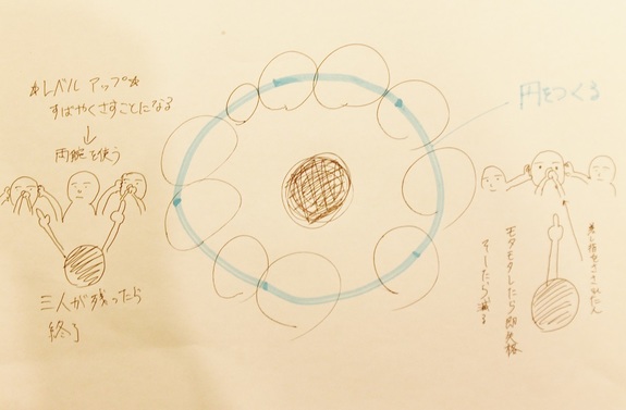 ・全員、輪になって内側を向きます。