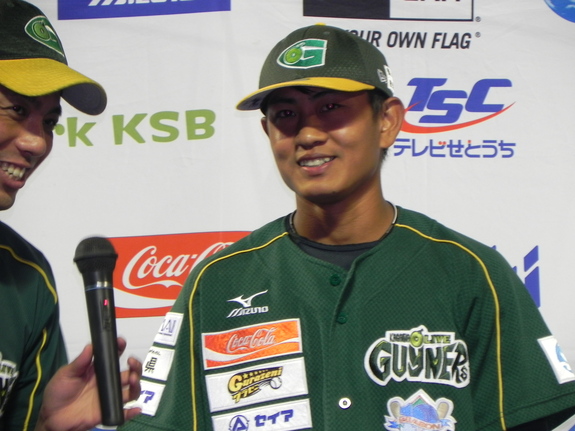 本日のガイナーズ2014シーズン最終戦でミャンマー出身のゾーゾーウーが3回途中から登板し相手打線を抑えるとその裏にガイナーズが逆転し、なんと1球で初勝利を手に入れました!