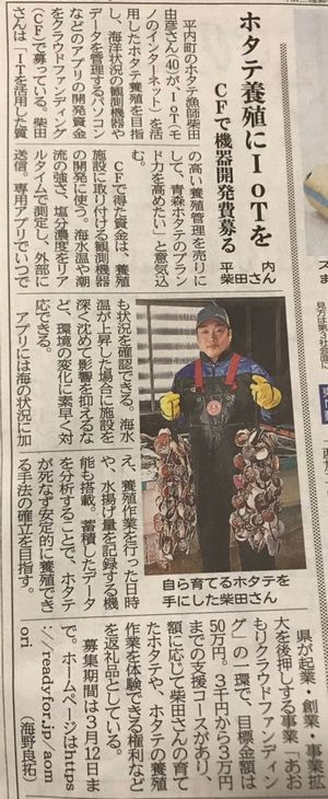 ホタテ養殖にITを取り入れ、養殖施設の海水温、潮流の強さや塩分濃度が把握できれば、ホタテが死んでしまう前に対策を取ることができます。