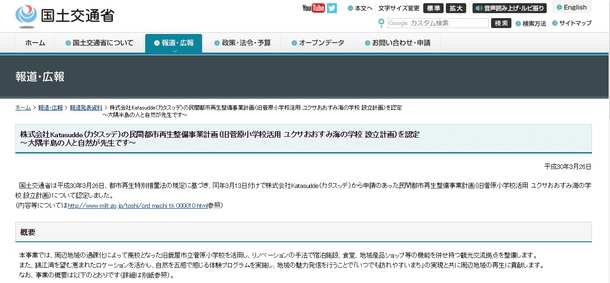 この度廃校利用宿泊施設計画【ユクサおおすみ海の学校】国土交通省の民間都市再生整備事業として認定されました!