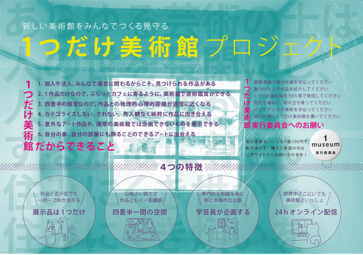 「美術、芸術がずっと好き」という方から「最近ちょっと芸術に関心があるんだよね」「良く分からないけど、アートに触れてみたい」みたいな方まで、少しでも美術・アート・芸術という言葉に反応していらっしゃるみなさま、ぜひ、今回の「1つだけ美術館」プロジェクトにお力をお貸しください。