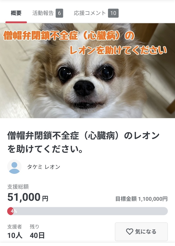 レオンの病状がとても悪く、手術を緊急で行ったこともあり資金に余裕がなく借入れたお金で手術を行いました。