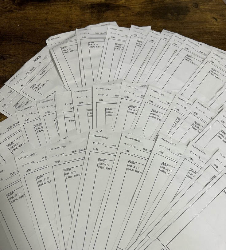 写真は、退院から今まで行った皮下点滴の領収書です。