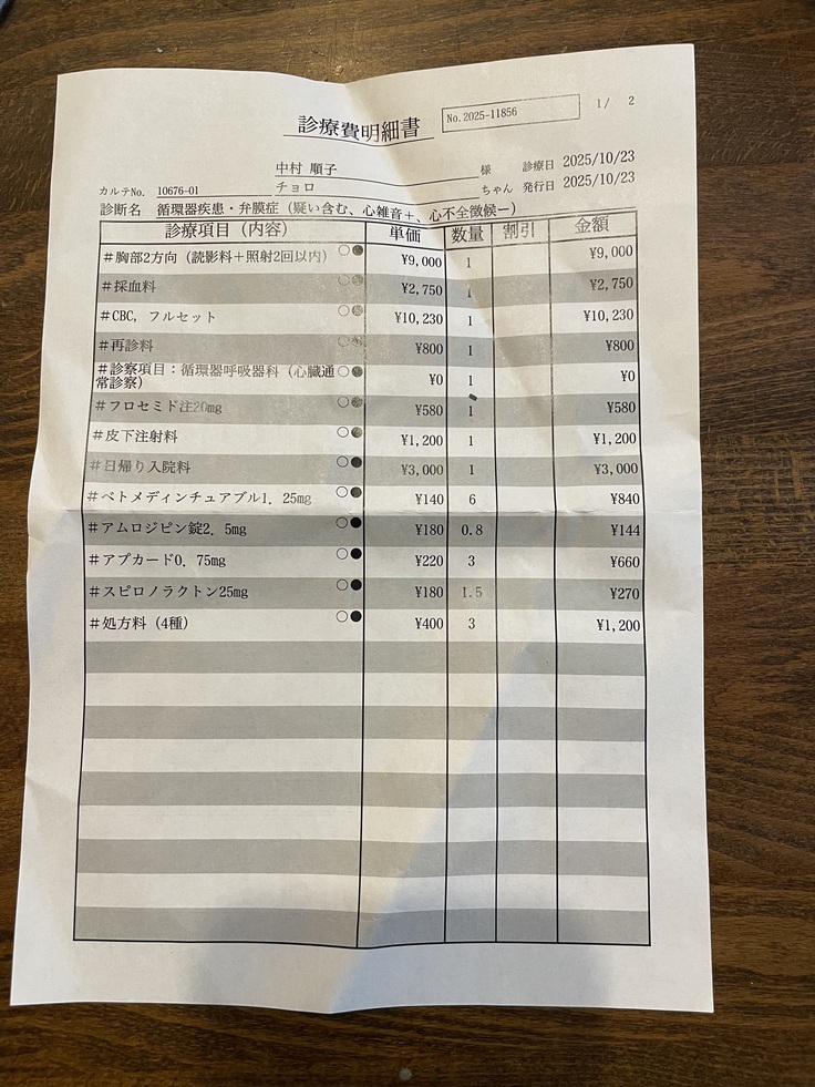 23日の緊急診察&日帰り入院は無事肺の水も抜けて、薬を調整して頂き退院出来ました。