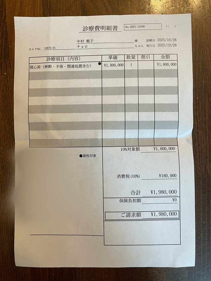 ◯今後の入院代、術後の定期検診代や老犬としてかかっていく医療費 50万円以上
