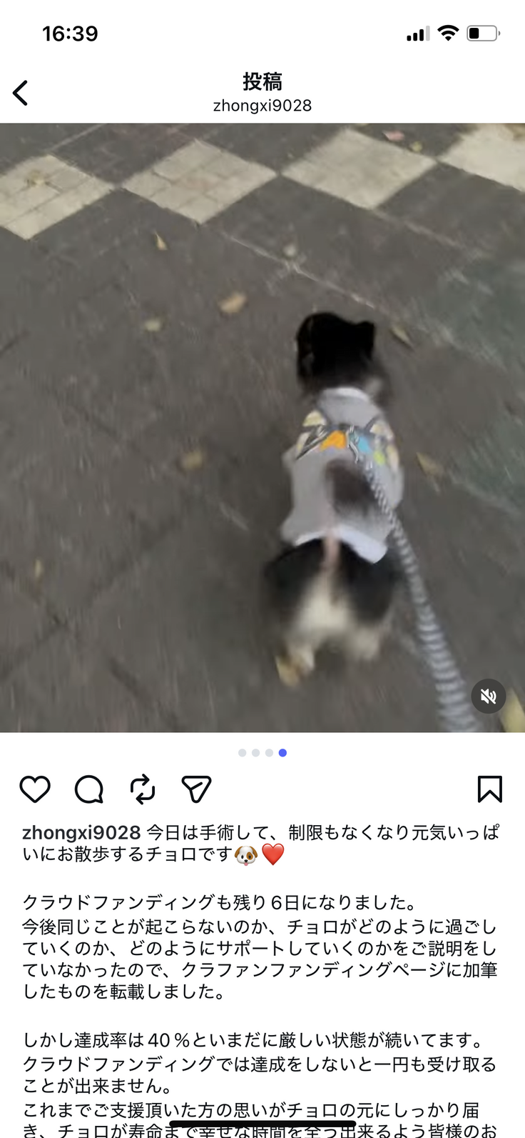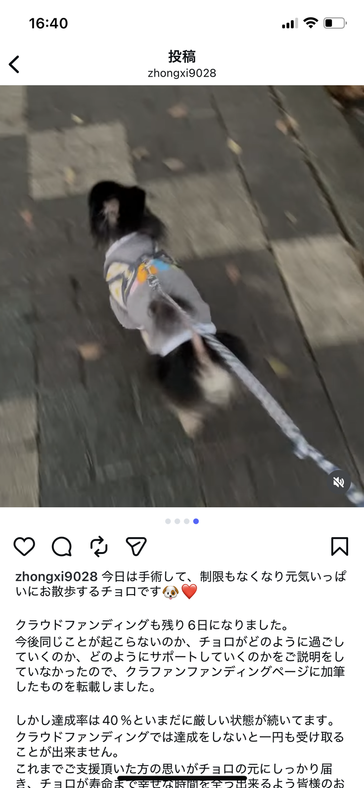今日は手術して、制限もなくなり元気いっぱいにお散歩するチョロです🐶❤️