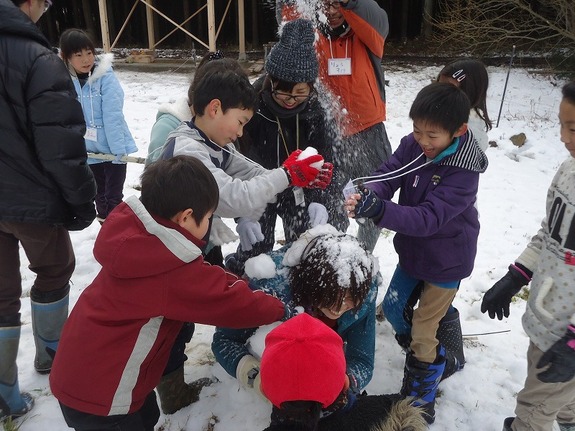 参加者とスタッフが遊んでいる様子(2013年冬キャンプより)