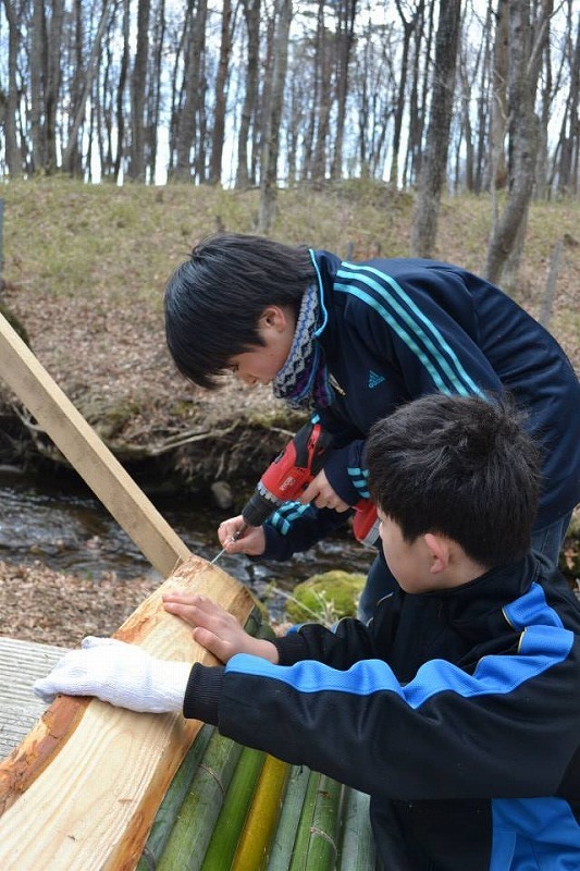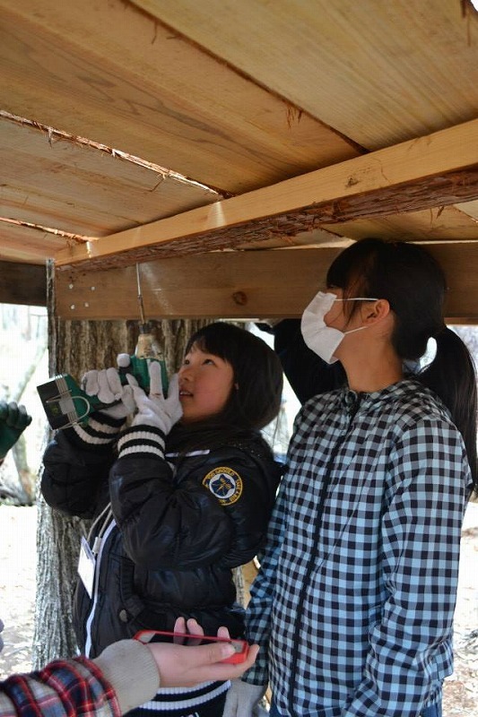 2014年3月のキャンプでは、2泊3日でツリーハウスを1棟、子どもたちと一緒に実際に作りました。2日目は大雨でしたが、子どもたちは自主的に合羽を着て作業に取り組んでいました。子どもたちの集中力、目を輝かせて取り組む姿は、この3年間関わってきたスタッフたちも驚くほどでした。