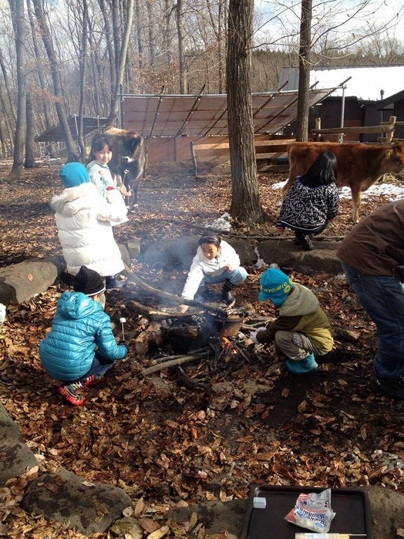 直火調理準備の様子(2013年冬キャンプより)