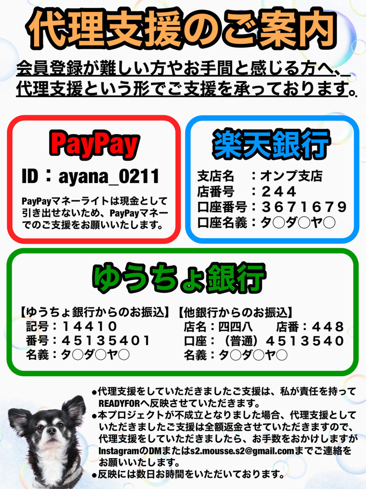 READYFORへのご登録が難しい場合、代理支援という方法もございます。