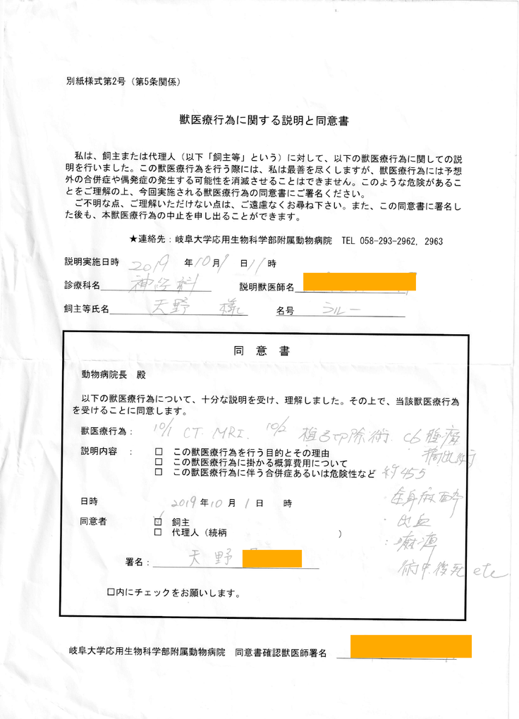 神経科の先生のご配慮で、腫瘍科でも経験豊富な先生に執刀して頂けることになりました。