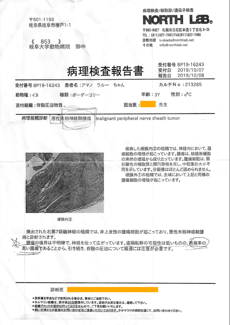 2019年10月2日 椎弓切除術にて腫瘍切除手術を受ける