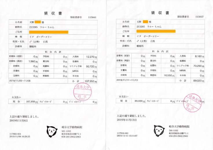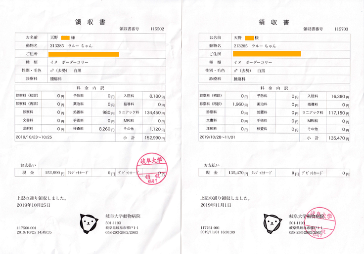 ラルーの火葬費用やそれまでにかかった手術、放射線治療、検査費用に充てさせていただき