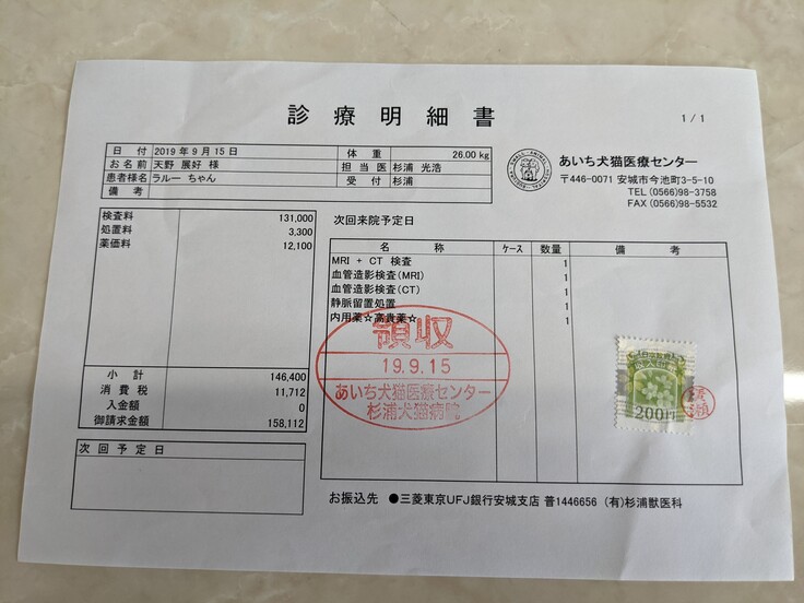 ただごとではない!と急いでMRIが撮れる動物病院へ駆け込みました。