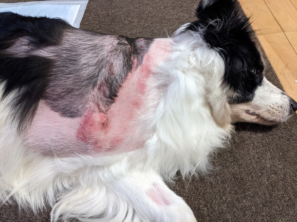 痒そうなので、患部をそっと撫でてあげると気持ち良さそうな満足気な顔をしてました☺️