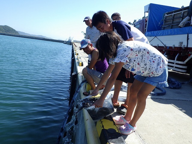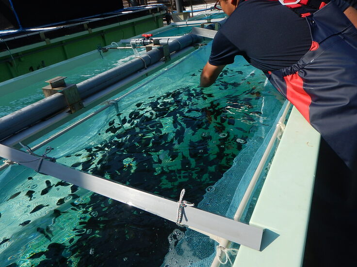 海の生き物は、産まれたばかりの卵やふ化したばかりの稚魚のあいだに、海の環境変化や他の魚などに食べられたりして、多くが死んでいきます。この生き残る条件が悪い時期を陸上の育成施設でケアして大きくした稚魚を海に放流することで、一定の安定した魚の資源が維持されて、次の世代に引き継ぐことができます。